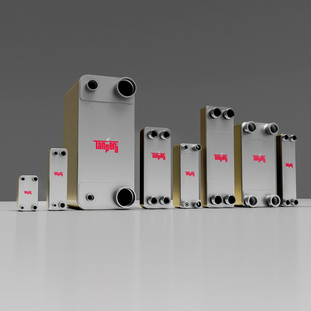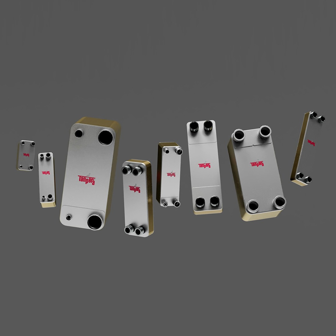 Die kupfergelöteten Plattenwärmetauscher verfügen über ein kompaktes und effizientes Wärmeaustauschsystem, bei dem zwei getrennte Flüssigkeiten Wärme übertragen, indem sie sich zwischen den Platten bewegen. Schmale Strömungskanäle zwischen den Edelstahlplatten erhöhen die Turbulenz der Flüssigkeiten und sorgen so für eine maximale Wärmeübertragung. Eine der Flüssigkeiten bewegt sich auf der heißen Seite und die andere auf der kalten Seite und die Wärmeübertragung findet zwischen den Platten statt. Die durch Kupferlot verbundenen Platten bilden eine geschlossene Struktur, so dass die Flüssigkeiten sicher zirkulieren, ohne sich zu vermischen. Dank dieses Prinzips ist eine effiziente und langlebige Wärmeübertragung gewährleistet, die hohen Druck- und Temperaturschwankungen standhält.